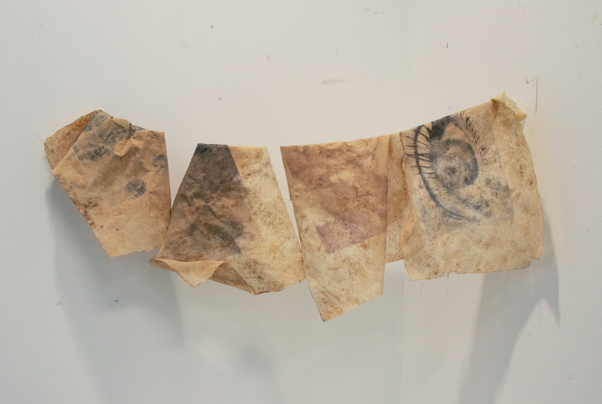 Imprints of Present, Traces of Arve is a mixed media installation, integrating leaf prints on clay and clay-soaked fabric lithographs, using images of my sensory organs. Fabric is intimately connected to the body, weaving a narrative of embodied experiences. These imprints, both physical and spiritual, reflect on the materiality of identities and their complex entanglements with social, cultural, and environmental forces. Engaging with themes of identity, migration, and femininity, the project unfolds as a personal narrative of connection and belonging.
